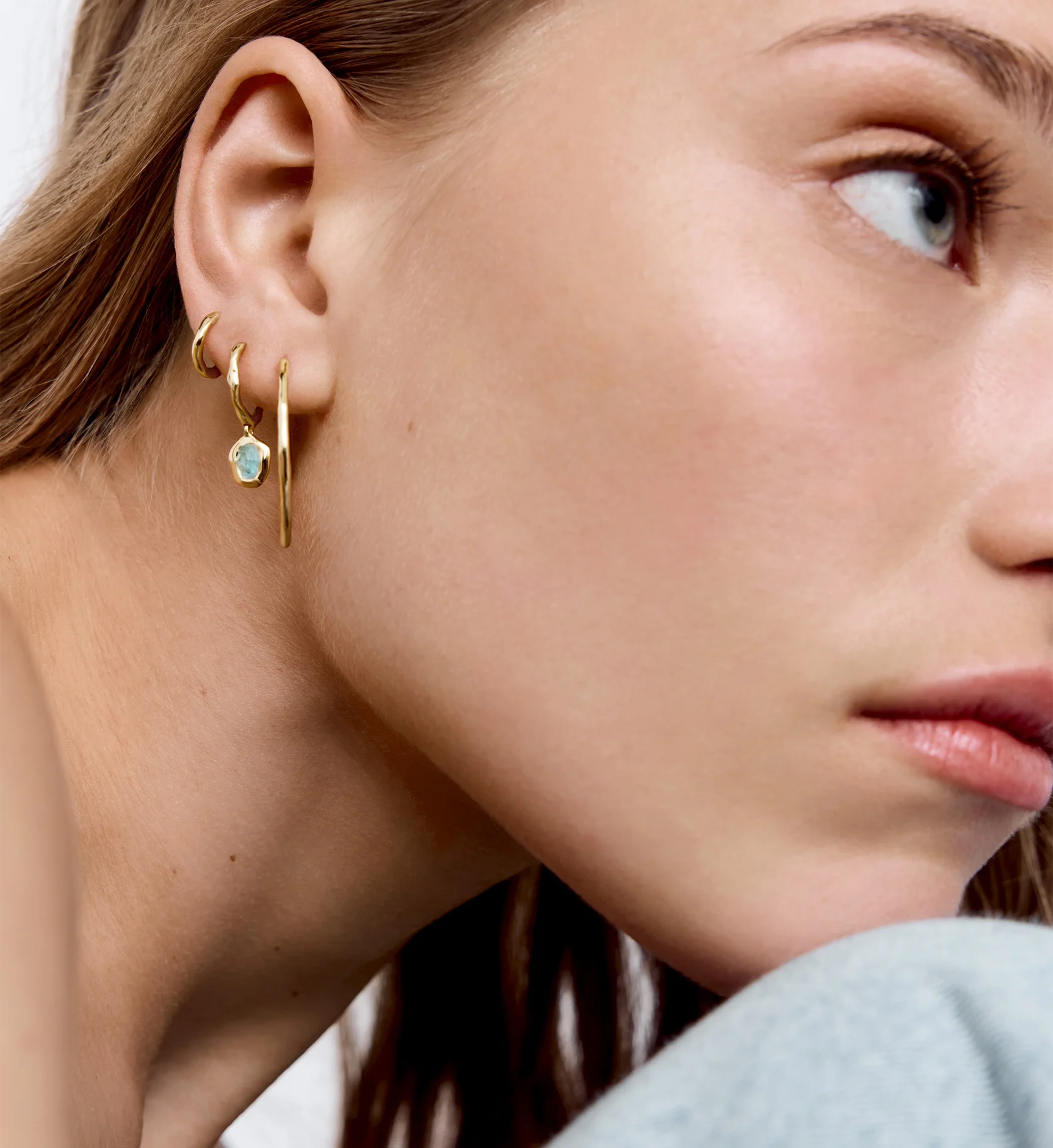 Add a touch of timeless elegance to your jewelry collection with these beautifully crafted gold hoop earrings featuring a stunning blue gemstone drop. Designed with a modern yet classic aesthetic, these earrings are perfect for both everyday wear and special occasions.